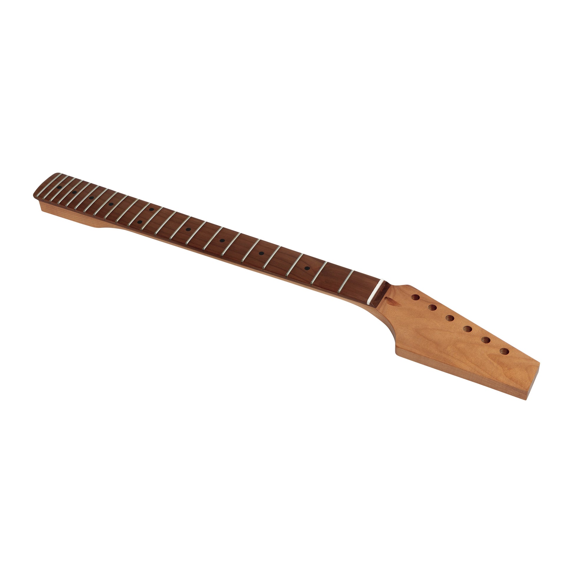So, if you`re ready to take your guitar build to the next level, give this pre-cut guitar headstock a try. Specifications: Neck Wood: Maple Fretboard Wood: Rosewood Finish: Satin Tuner Hole Size: 10mm Radius: 10.